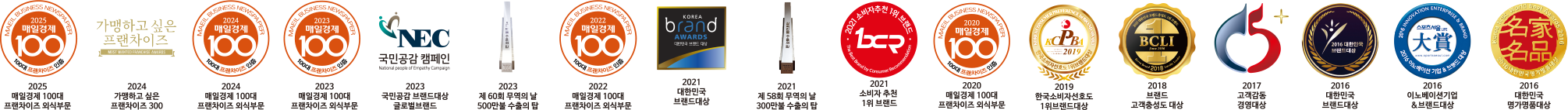 4년 연속 매일경제 100대 프랜차이즈 수상(22~25년)